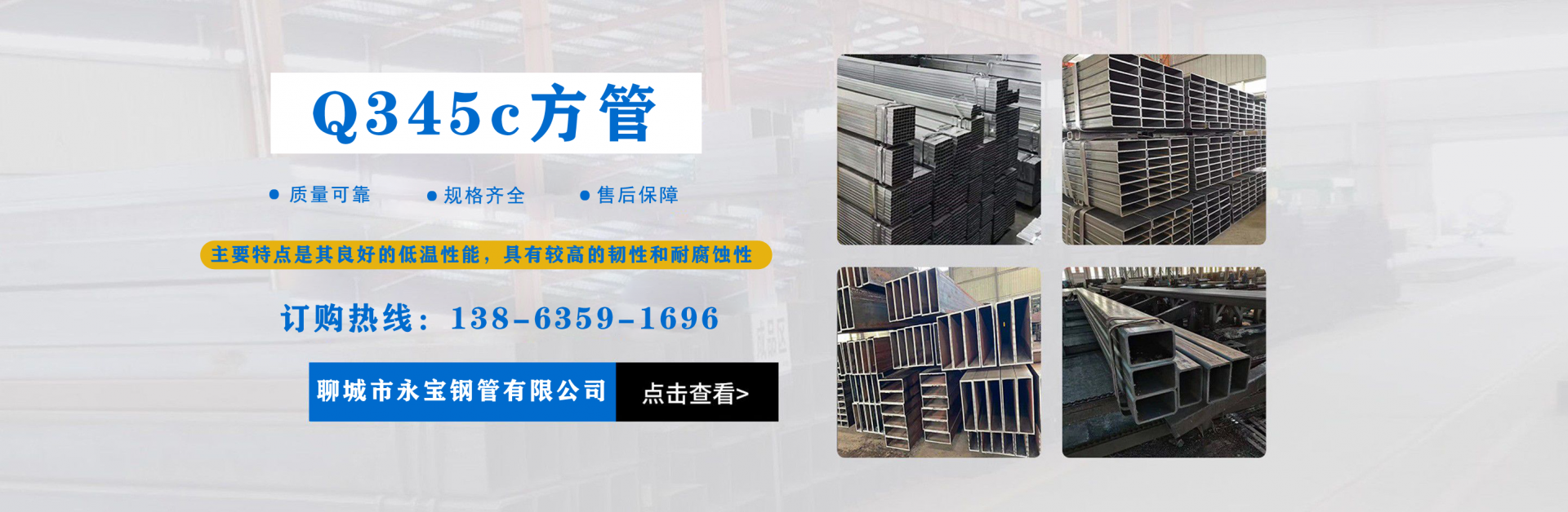 聊城市永寶鋼管有限公司主要銷售各種方管產(chǎn)品,主營無縫方管,Q345B無縫方管,無縫矩形管,直角無縫方管,幕墻方管,建筑工程專用方管,無縫方管廠等,我公司在長期的生產(chǎn)經(jīng)營業(yè)務(wù)中與各大鋼廠建立了長期穩(wěn)固的業(yè)務(wù)合作關(guān)系?! 】商峁o縫方管,無縫矩形管,直角無縫方管,幕墻方管,建筑工程專用方管,無縫方管廠,無縫方矩管,Q345B無縫方管,Q345E無縫方管,Q355B無縫方管,小口徑無縫方管,厚壁無縫方管,27simn無縫鋼管,厚壁無縫鋼管廠家,無縫方矩管,45#無縫鋼管,20cr無縫鋼管,大口徑無縫鋼管,小口徑無縫鋼管,厚壁無縫鋼管,薄壁無縫鋼管,Q345C無縫鋼管,Q345D無縫鋼管等產(chǎn)品。目前是華東地區(qū)規(guī)模較大的方管經(jīng)營企業(yè)之一。產(chǎn)品廣泛用于汽車行業(yè)、礦山、農(nóng)業(yè)機(jī)械、石化石油機(jī)械、工程機(jī)械、核電工業(yè)、高用量變壓器、衛(wèi)星發(fā)射塔、造船、玻璃機(jī)械、塑料機(jī)械、紡織印染機(jī)械及其他各種機(jī)械等眾多行業(yè)?! 」旧锨ХN規(guī)格、材質(zhì)任您選購,我公司將以熱情的服務(wù),優(yōu)惠的價格回報新老客戶,我們熱情歡迎來電/來人垂詢、洽談!隨時恭候您光臨惠顧!公司以“永不滿足、志在超越”的企業(yè)精神,以不斷創(chuàng)新的新經(jīng)濟(jì)理念不斷創(chuàng)造新的輝煌。以良好的產(chǎn)品奉獻(xiàn)當(dāng)代社會,以滿意的服務(wù)酬謝四海賓朋。本公司愿與國內(nèi)外各界朋友密切合作,攜手共創(chuàng)...